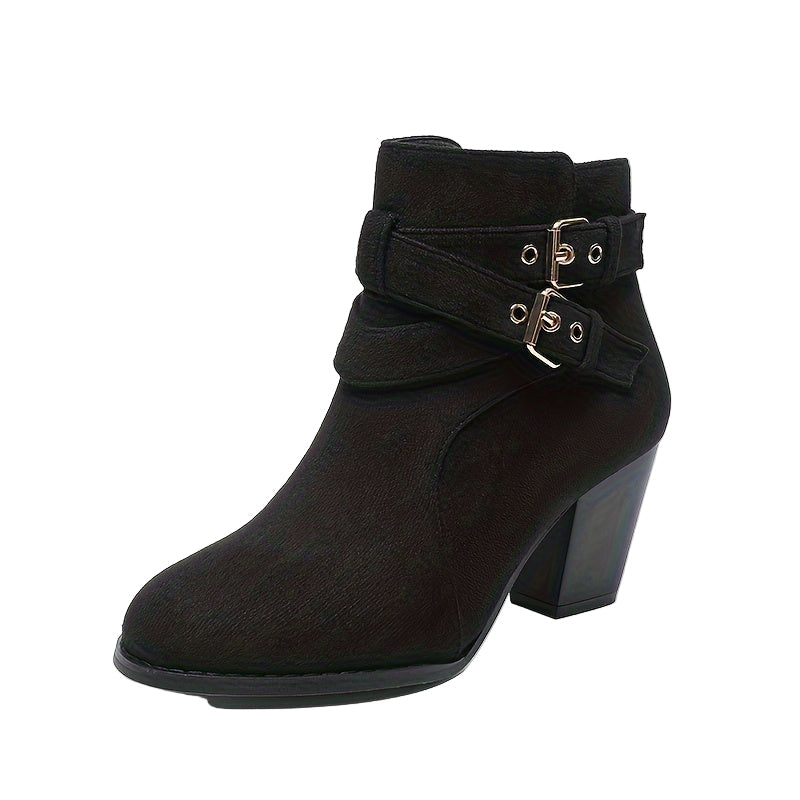 Dame ankelstøvler med spænde og blokhæl